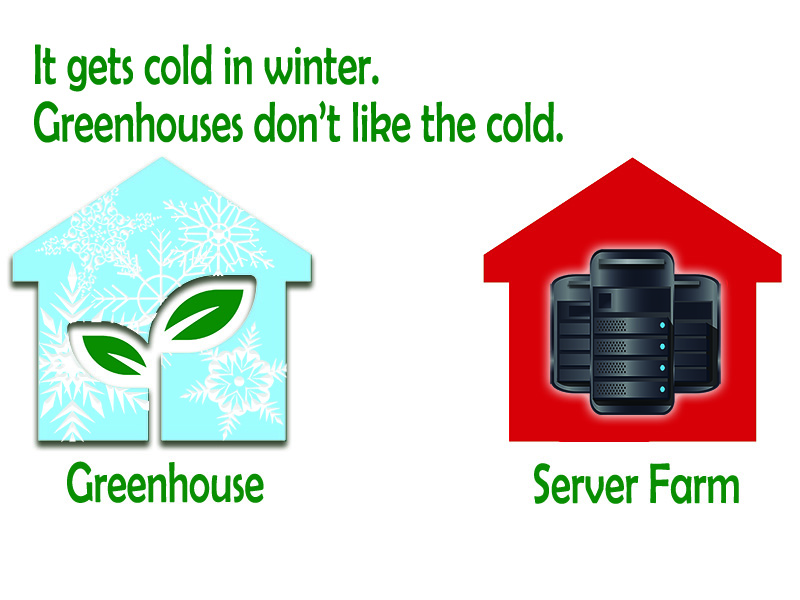 That’s why our servers and the adjacent greenhouse will be located in Saguenay, Quebec, some 5 hours’ drive north of Montreal. In that part of the world, the thermometer dips to -40ºF every winter. As you’d probably imagine, there’s an abbreviated growing season for fresh fruits and vegetables to accompany those chilly temperatures. Greenhouses form a crucial part of the food chain, but even greenhouses can’t operate year-around in the subarctic cold temperatures, not without spending exorbitant heating costs.